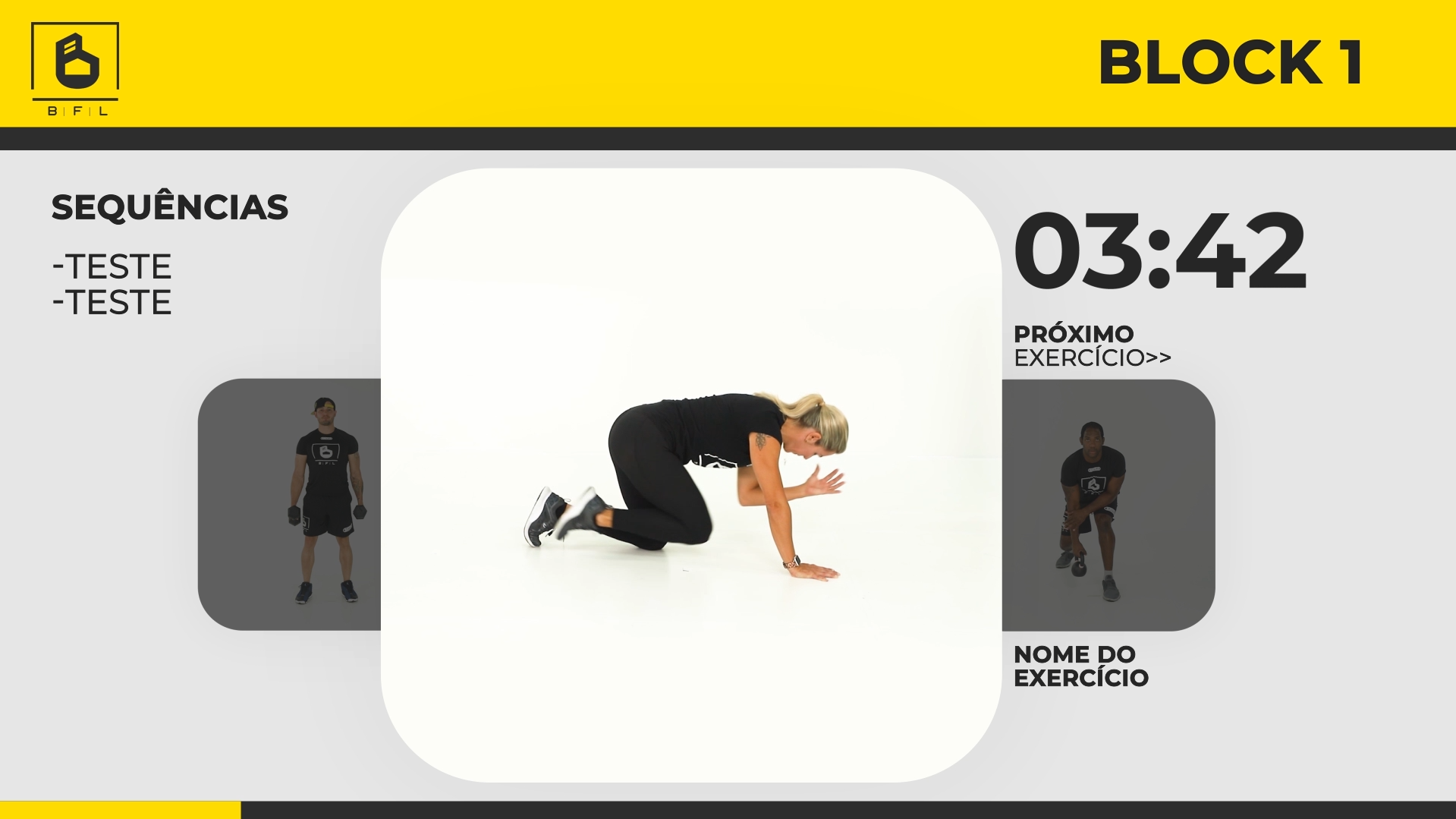 Trabalho de concepção criativa e dinâmica de curso online de exercícios físicos.
